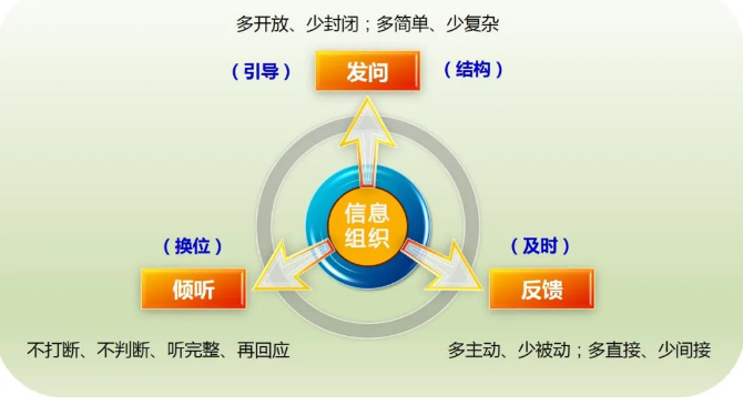 一次有效的溝通,通常需要四種技巧來保障:信息組織、發(fā)問、傾聽、反饋。其中,信息組織是基礎(chǔ),也是有效溝通的前提。為簡化問題,本文只針對一對一的溝通情境。